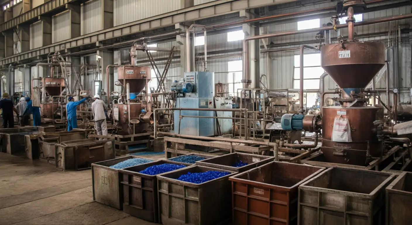 High-quality copper sulphate pentahydrate production with precision and care.